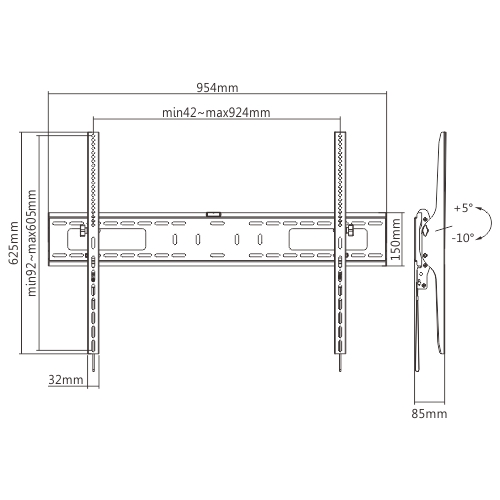 ΧΑΡΑΚΤΗΡΙΣΤΙΚΑ ●Εύκολη συναρμολόγηση: Η εγκατάσταση είναι τόσο εύκολη όσο 1-2-3 ●Open Architecture: παρέχει αυξημένο αερισμό και ευκολότερη πρόσβαση στα καλώδια ●Αυτόματο κλείδωμα ελατηρίου με κλικ: βοηθά τα στηρίγματα της τηλεόρασης να κουμπώνουνστη θέση τους για πρόσθετη ασφάλεια ●Σχεδίαση με ελεύθερη κλίση: κάνει εύκολη προσαρμογή προς τα εμπρός ή προς τα πίσω για καλύτερη θέαση και μειωμένη αντανάκλασηΠΡΟΔΙΑΓΡΑΦΕΣ Κατηγορία προϊόντος: Επιτοίχια βάση τηλεόρασης με κλίση Υλικό: Χάλυβας, Πλαστικό Πάχος μεταλλικού φύλλου: Βραχίονας βραχίονα THK=2mm φύλλο ψυχρής έλασης,Πλάκα τοίχου THK=2mm φύλλο ψυχρής έλασης (Βραχιόνιος βραχίονας THK=0,079″ φύλλο ψυχρής έλασης, Πλάκα τοίχου THK=0,079″ φύλλο ψυχρής έλασης) Φινίρισμα Επιφανείας: Επικάλυψη σε σκόνη Χρώμα: Μαύρο ματ Διαστάσεις: 954x625x85mm (37,6″x24,6″x3,3″) Μέγεθος οθόνης προσαρμογής: 60″-100″ Fit Curved TV: Ναι Μοτίβο οπής τοποθέτησης: VESA & Universal Συμβατό με VESA: 200×200,300×200,400×200,300×300,400×300,400×400,600×400,600×600,800×600,900×600 Μέγιστη. Τρύπα στερέωσης: 900×600 Χωρητικότητα βάρους: 75 κιλά (165 λίβρες) Δοκιμασμένη αντοχή: 3 φορές Εγκρίθηκε Προφίλ: 85mm (3,3″) Εύρος κλίσης: +5°~-10° Ελεύθερη κλίση οθόνης: Όχι Εγκατάσταση: Συμπαγής τοίχος, Διπλό Stud (406mm/450mm/600mm) Τύπος πίνακα: Αποσπώμενο πάνελ Τύπος πλάκας τοίχου: Σταθερή πλάκα τοίχου Διαχείριση καλωδίων: Όχι Επίπεδο φυσαλίδων: Επίπεδο φυσαλίδας με άγκιστρο (περιλαμβάνεται στο πακέτο εξαρτημάτων)