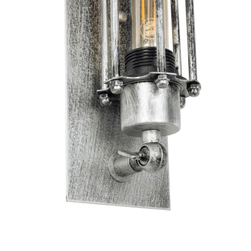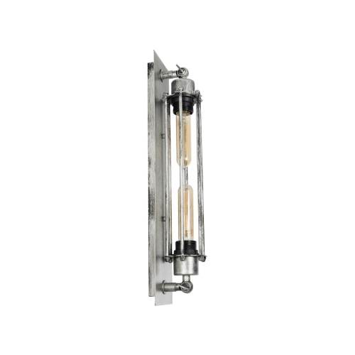 GloboStar® BESPOKE 01567 Vintage Industrial Φωτιστικό Τοίχου Απλίκα Δίφωτο Ασημί Σκουριά Μεταλλικό Πλέγμα Μ9.5 x Π10 x Υ47cm