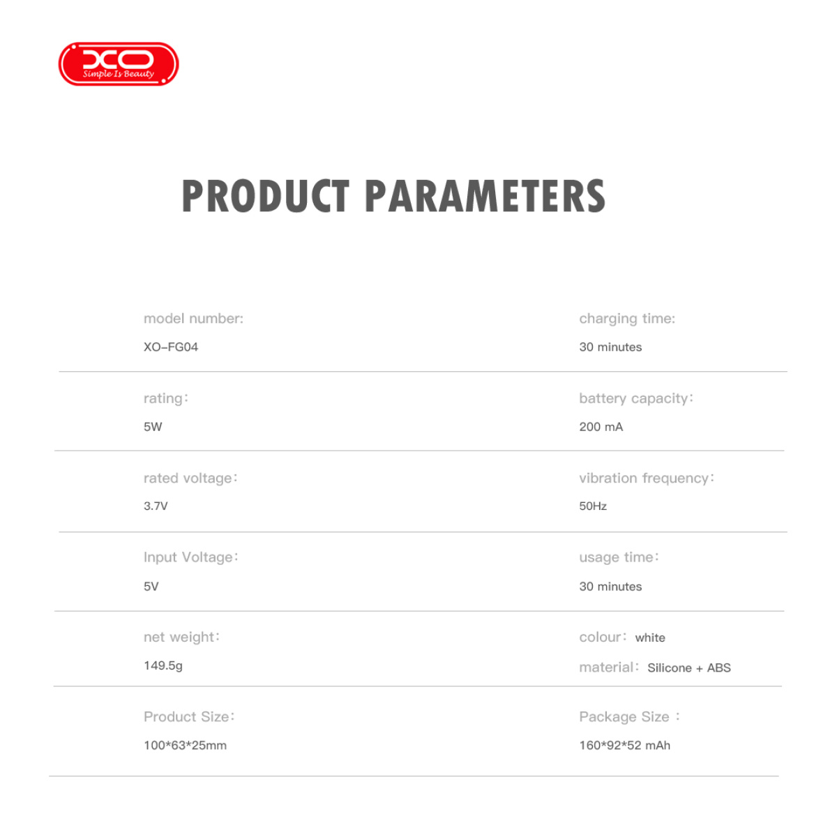 - Αριθμός μοντέλου: XO-FG04