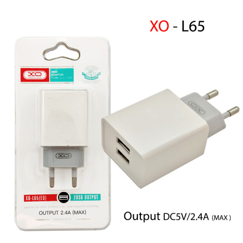 Ο XO L65 είναι ένας φορτιστής 2.4Α. Ένα φορτιστής εξοπλισμένος με δύο υποδοχές USB. Παρέχει αρκετή ενέργεια για να φορτίσει ακόμη και τις μεγαλύτερες διαθέσιμες κινητές συσκευές. Η κλασική εμφάνιση ταιριάζει σε όλους τους τύπους εσωτερικών χώρων και η ποιότητα κατασκευής υποδηλώνει ότι είναι μια συμπαγής και ανθεκτική συσκευή.